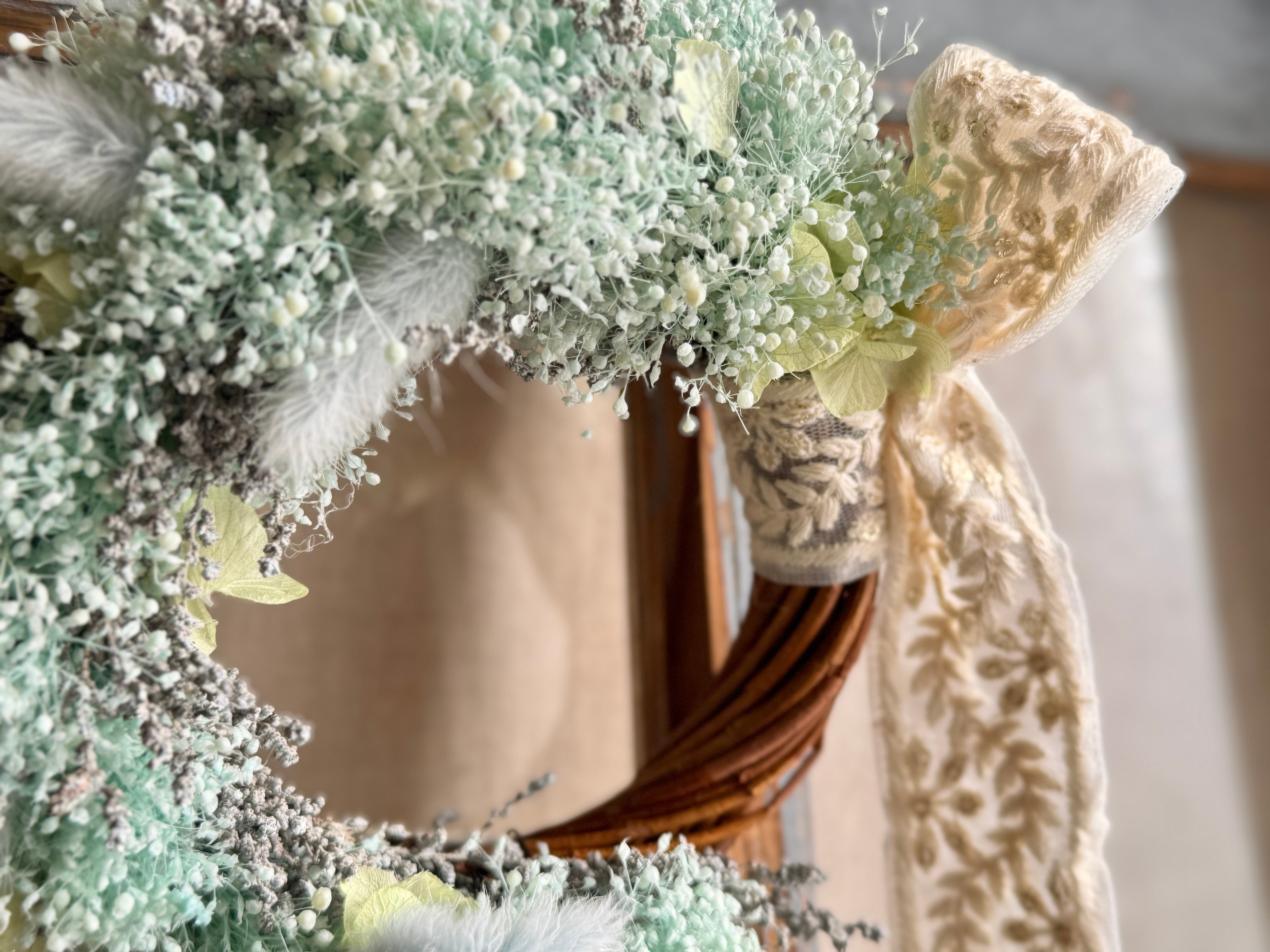 自分へのご褒美にも、さりげないギフトにもおすすめのリースです。